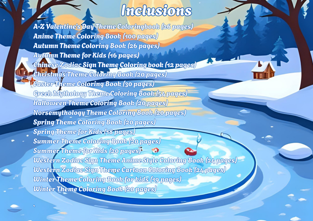 Seasonal Themes (Autumn, Spring, Summer, Winter) – Celebrate every season with cozy, playful illustrations (123 pages) Holiday Favorites – Valentine’s Day, Easter, Halloween & Christmas fun your child will love (96 pages) Cultural & Mythological Themes – Greek and Norse mythology, Chinese Zodiac signs, and more (86 pages) Zodiac Fun – Western zodiac signs in both anime and cartoon styles (48 pages) Anime Theme Book – A cute and expressive collection for little fans of anime (100 pages)