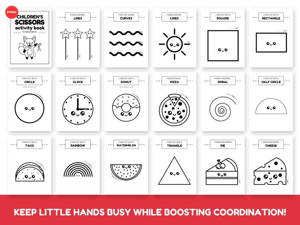 🎁 Bonus: Children’s Scissors Activity Book (cut-and-learn printables) included at no extra cost!